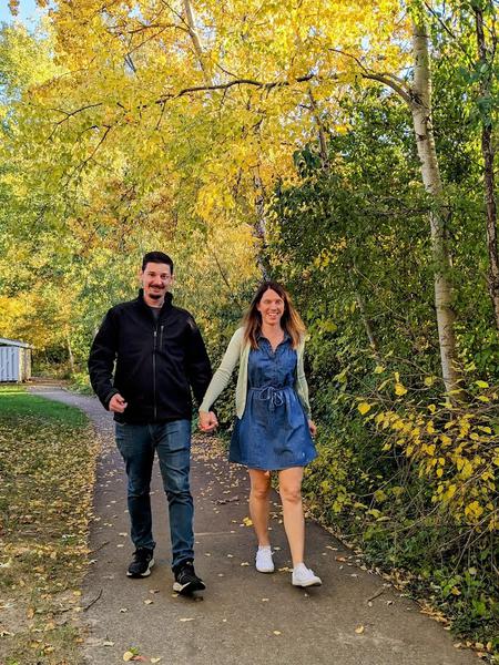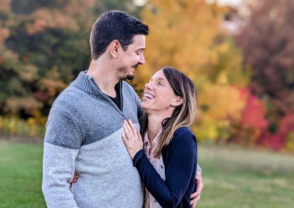 My dear friends Natalie and Jayson got engaged at the start of fall. They wanted to save money by skipping professional engagement photos, but they still wanted some nice shots of them to use on their wedding website, on social media, and in their paperless invite. I was honored they asked me to be their photographer! With some great fall colors, approaching evening light, and two costume changes, I was able to capture the love and affection that flows naturally between them.